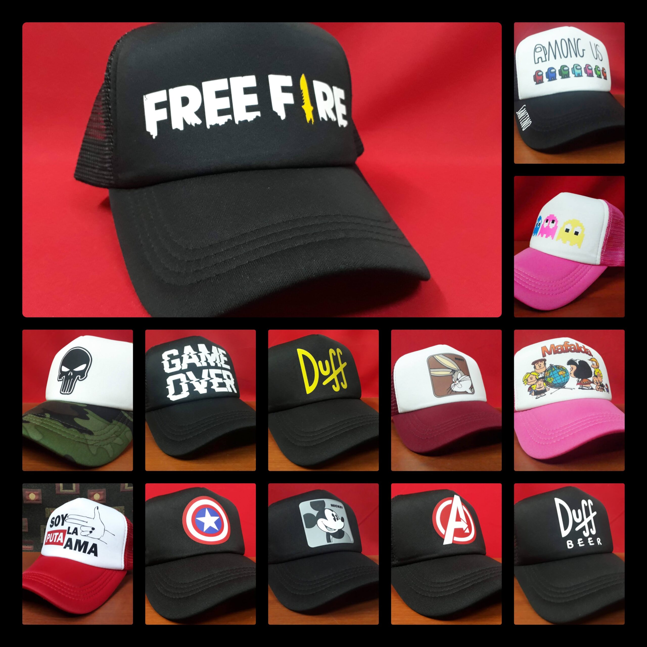 Estampadas con Diseños a elección de nuestro Catálogo, Tu Logo o Marca o Cualquier Imagen que desees. https://filovisual.com/catalogo-disenos-gorras/
